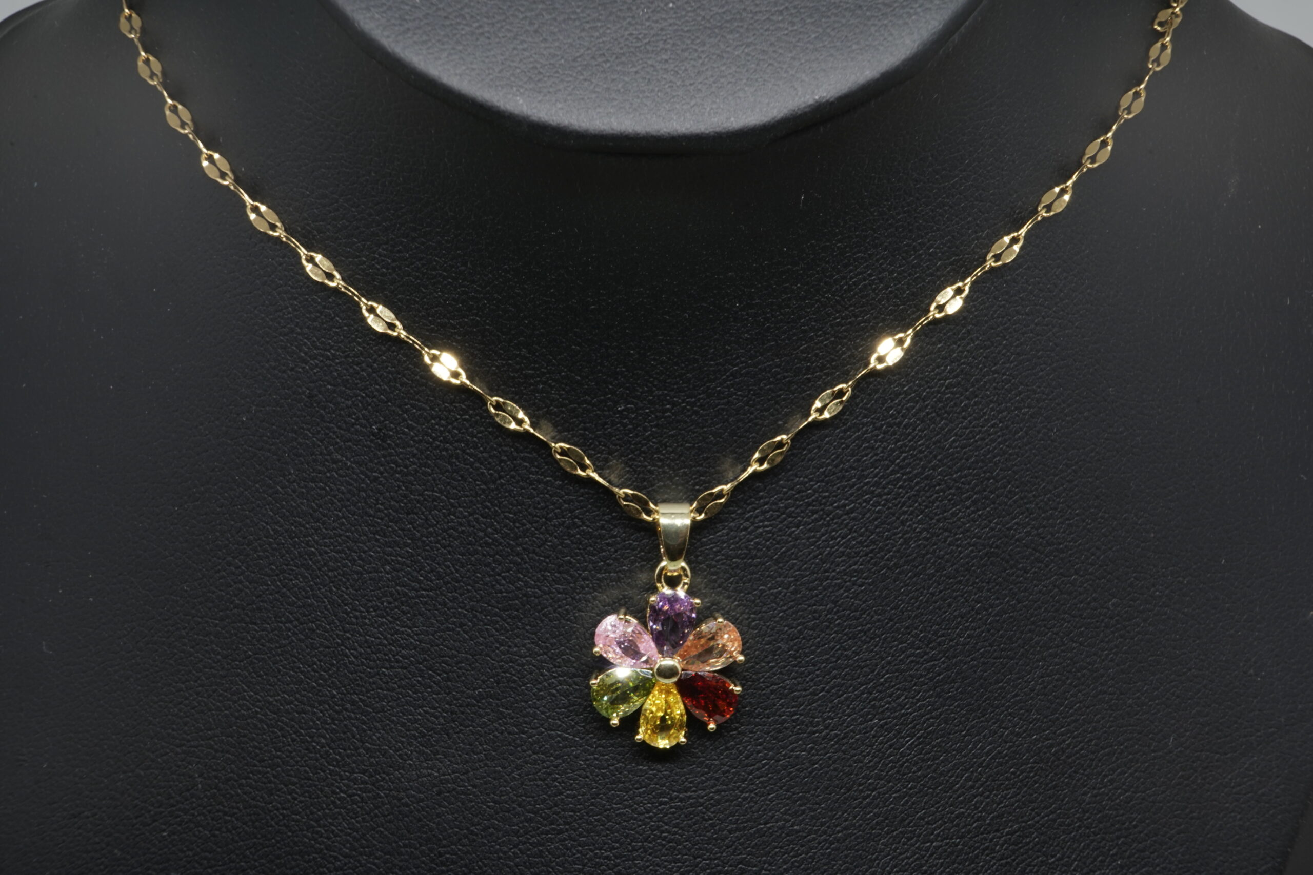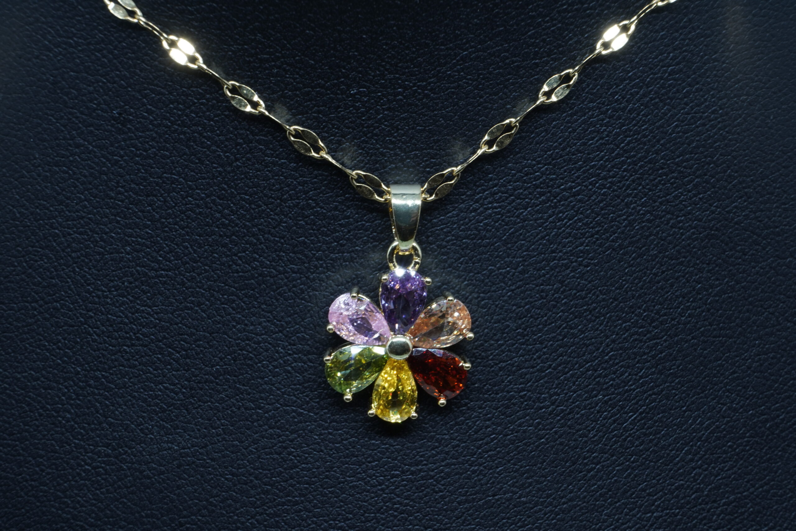 שרשרת עם תליון פרח צבעוני ומבריק , שמוסיף מבע וסטייל לכל הופעה